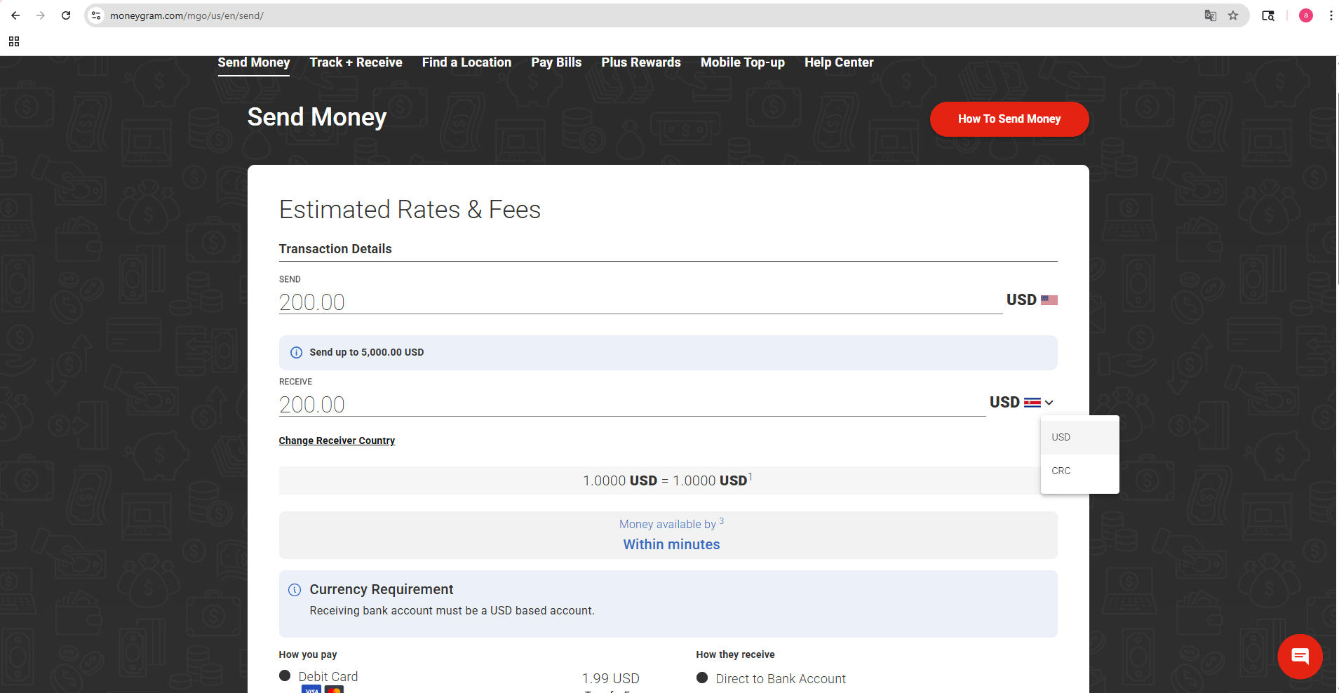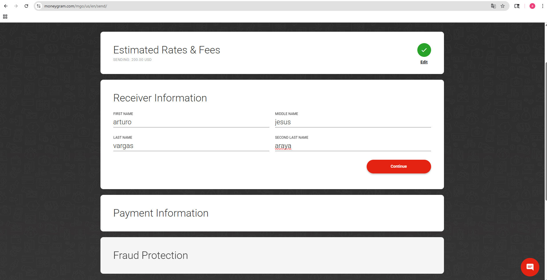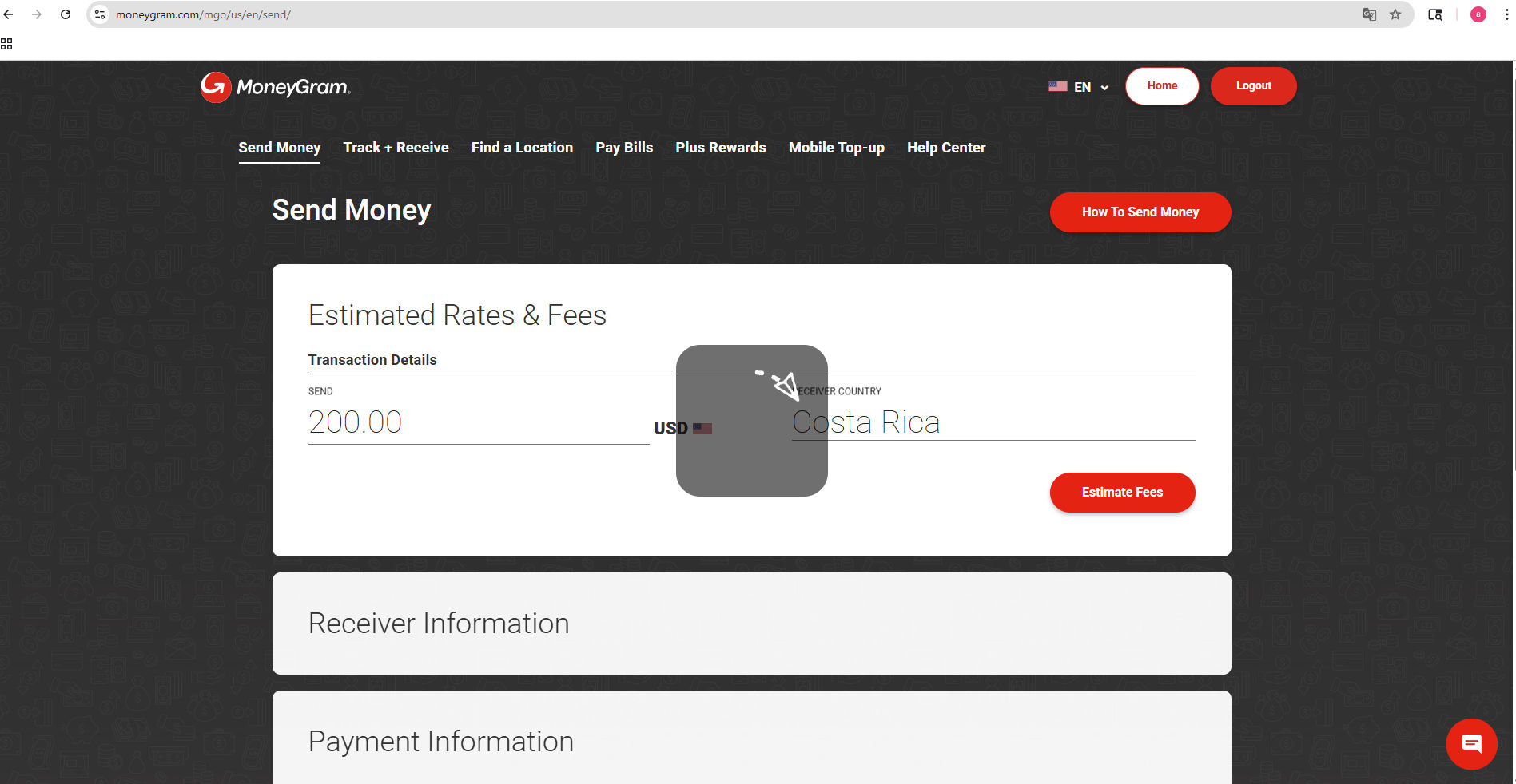 Start a Money Transfer to Costa Rica using the Receiver Name you were given.