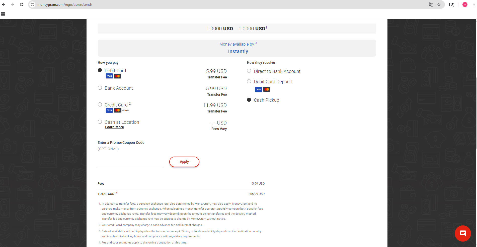 2. You can do it through their WEBSITE or PHONE app. Sign up an account, and with credit or debit you can send money.