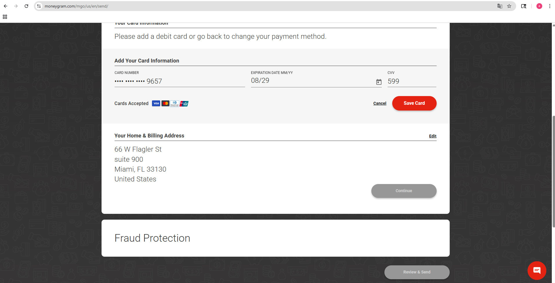 It’s important for you to build a business relationship with MONEYGRAM. At the beginning they want to make sure that the card registered is under you name and that you are the sole user. As soon as you verify your account, you will be able to use their service with no interruptions. Every time you registered a new card, they will probably ask you to send docs