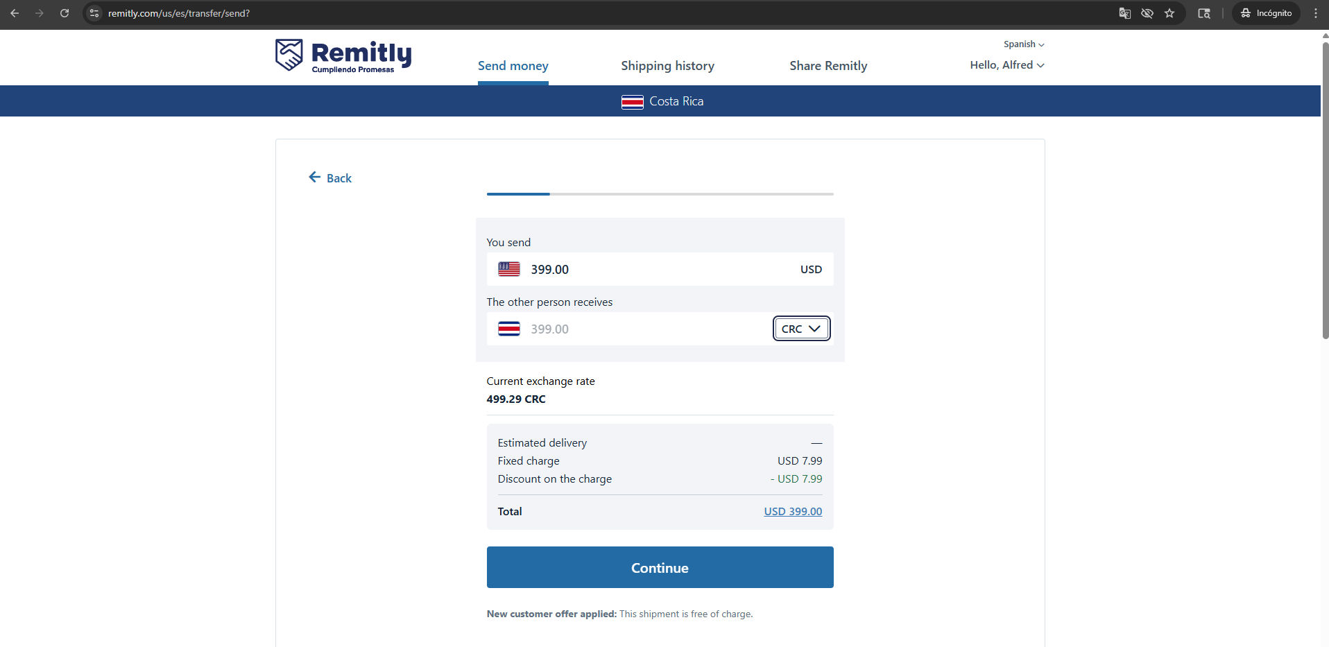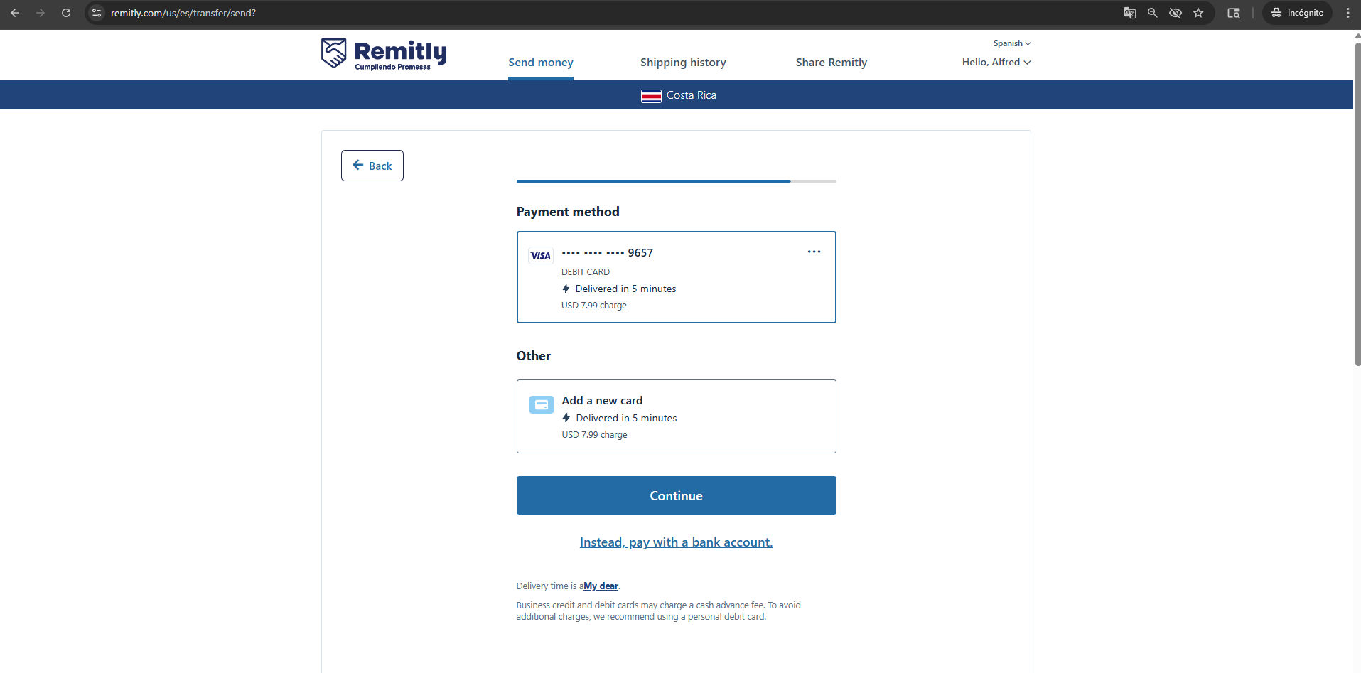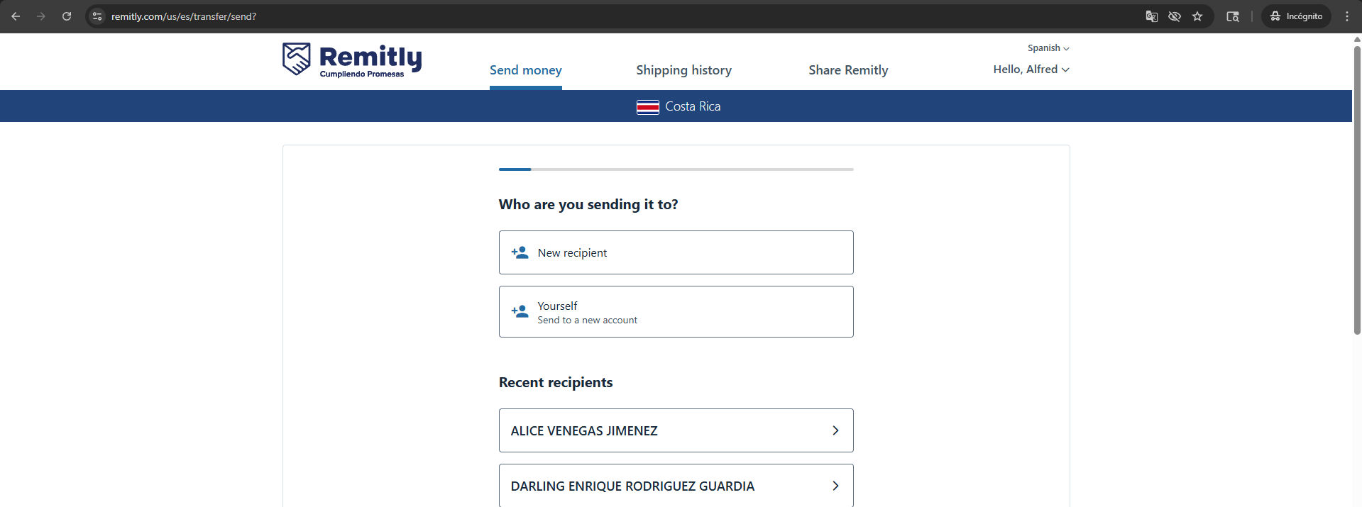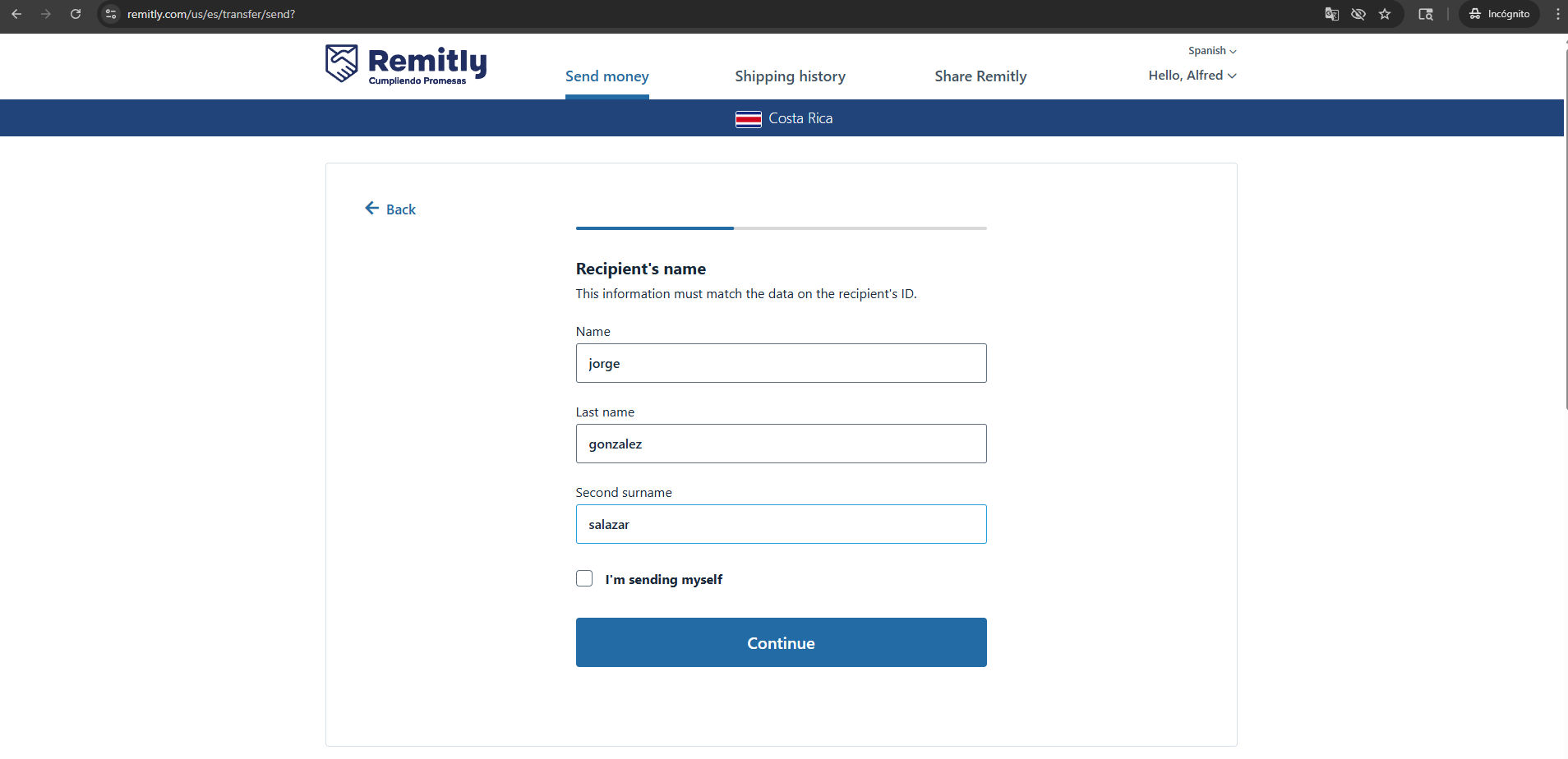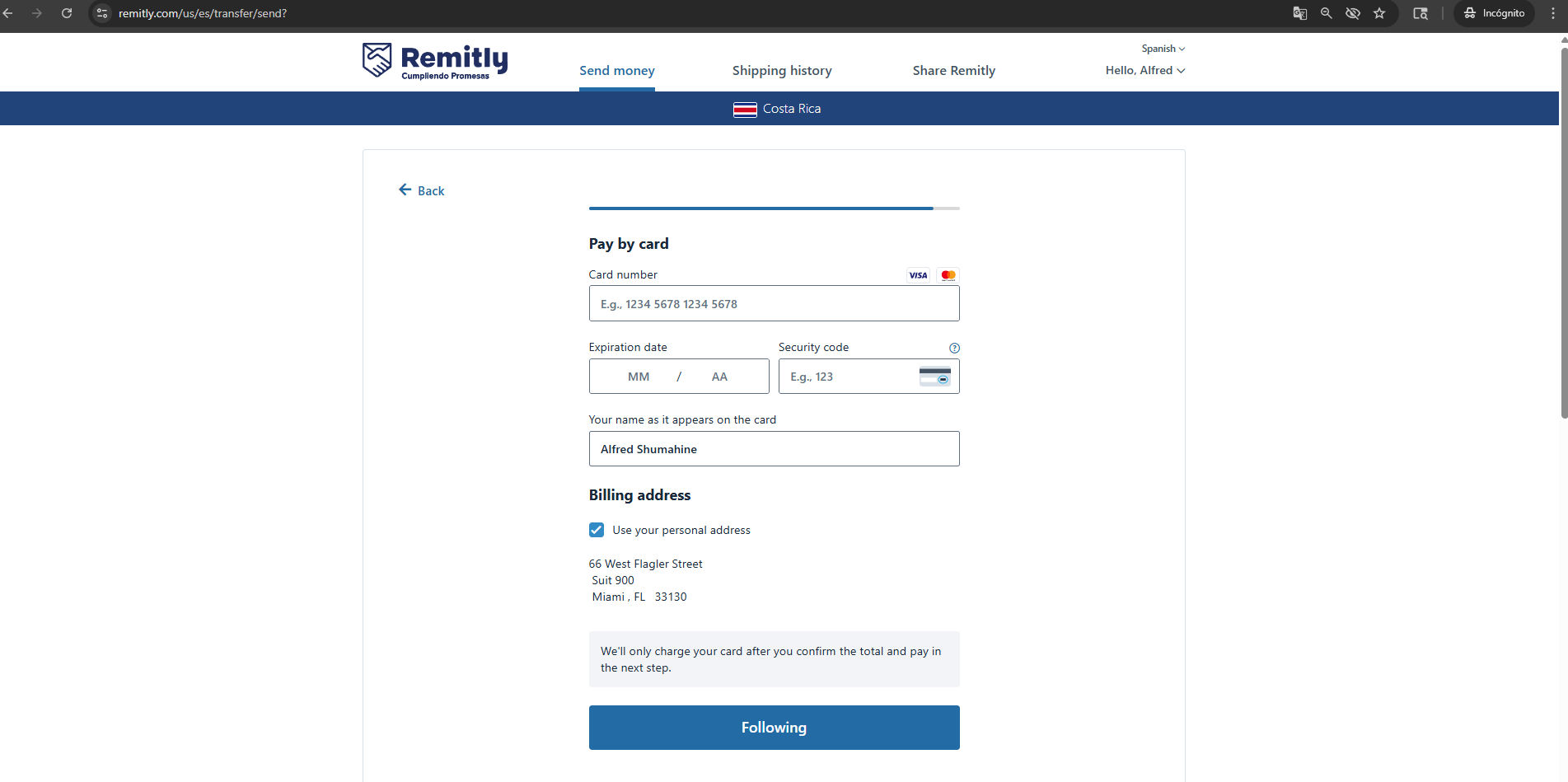 The Cashier will provide you with a unique Receiver Name in Costa Rica for that service.